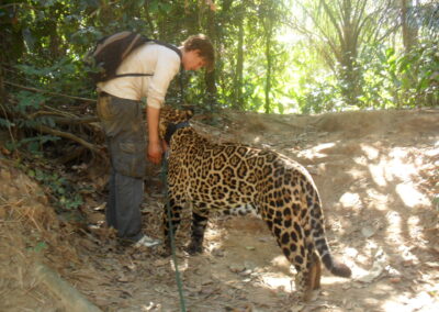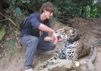 For two months of the summer holiday of my undergraduate studies, I volunteered in Inti Wara Yassi, Ambue Ari, a rehabilitation center in Bolivia. During this time, I helped with the maintenance of the center and helped feeding, and providing enrichment for, a myriad of animals, such as monkeys, birds, tapirs, pumas and jaguars. However, my main responsibility was to provide care and monitor the health of a jaguar named Jaguarupi. This entailed long walks (or runs should there be monkeys around) through the Amazonian forest to provide Jaguarupi with the physical activity and behavioural stimulation required to live the most fulfilling life possible. This experience has taught me an intuitive understanding of animal behaviour, and the importance of trust and patience when working with animals.
